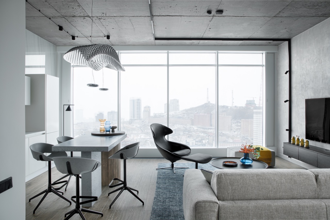 Команда студии «Архитекстура» спроектировала квартиру площадью 74 кв. метра в ЖК «Высота» во Владивостоке. Основным пожеланием заказчиков — молодой пары — было сохранить высоту потолка и ощущение воздушности и легкости интерьера.