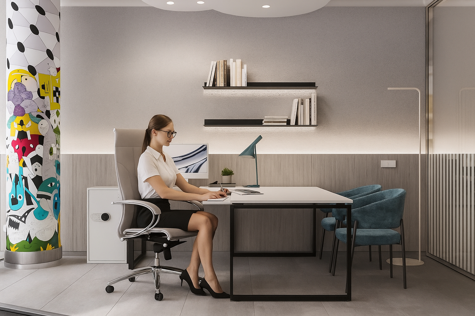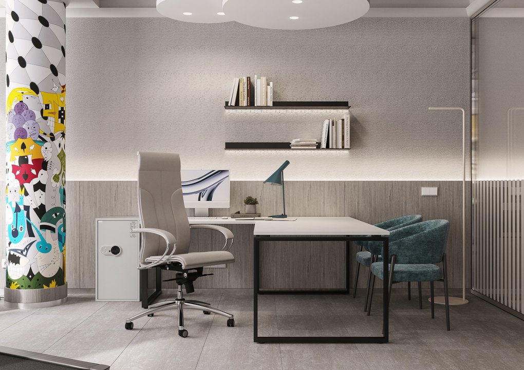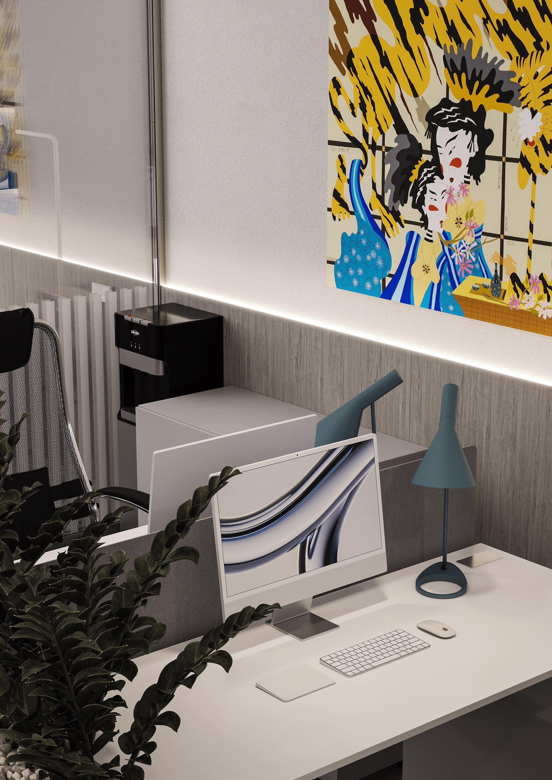 Этот проект — пример того, как на небольшой площади можно создать функциональное и стильное рабочее пространство с индивидуальным характером.