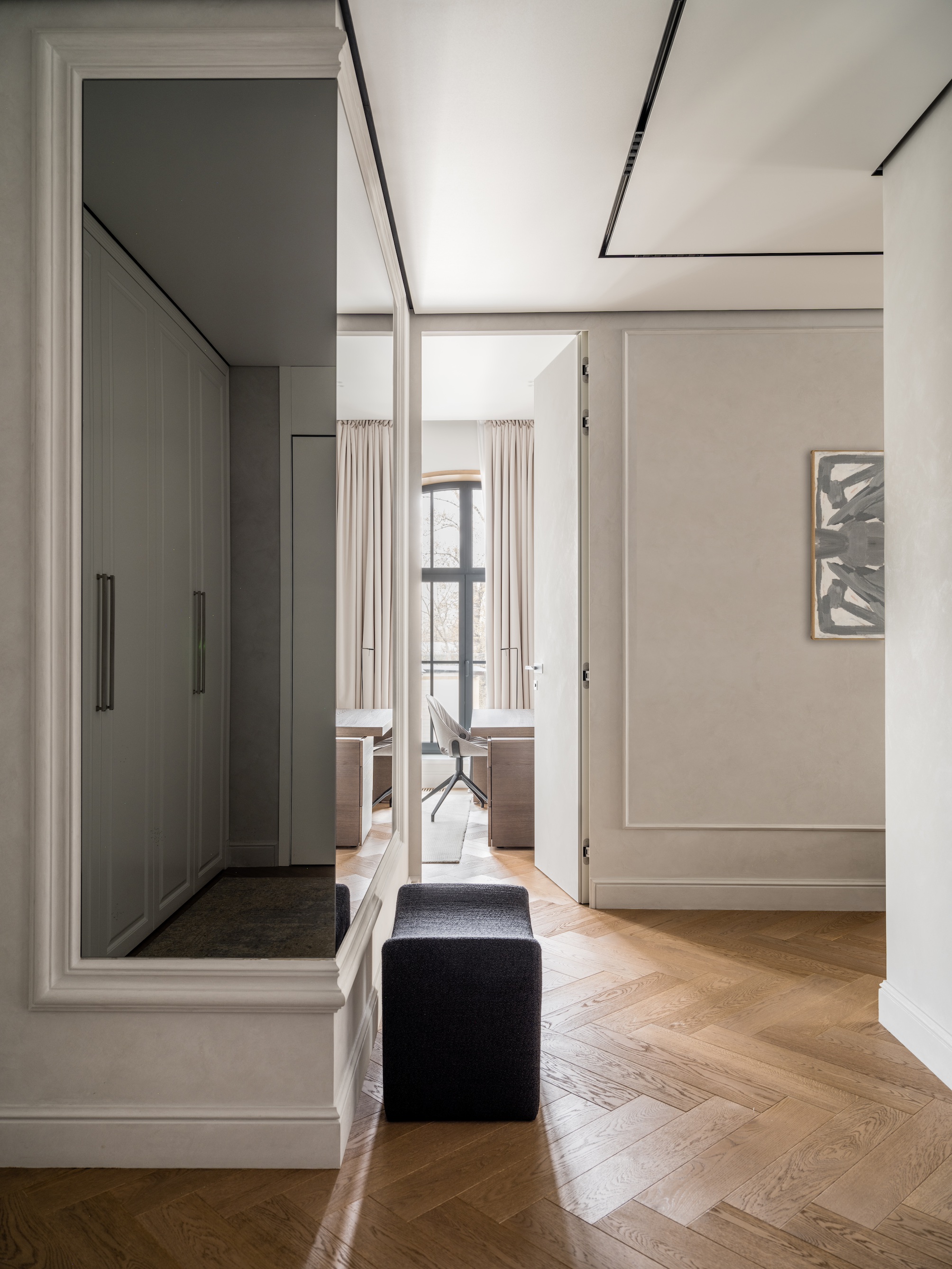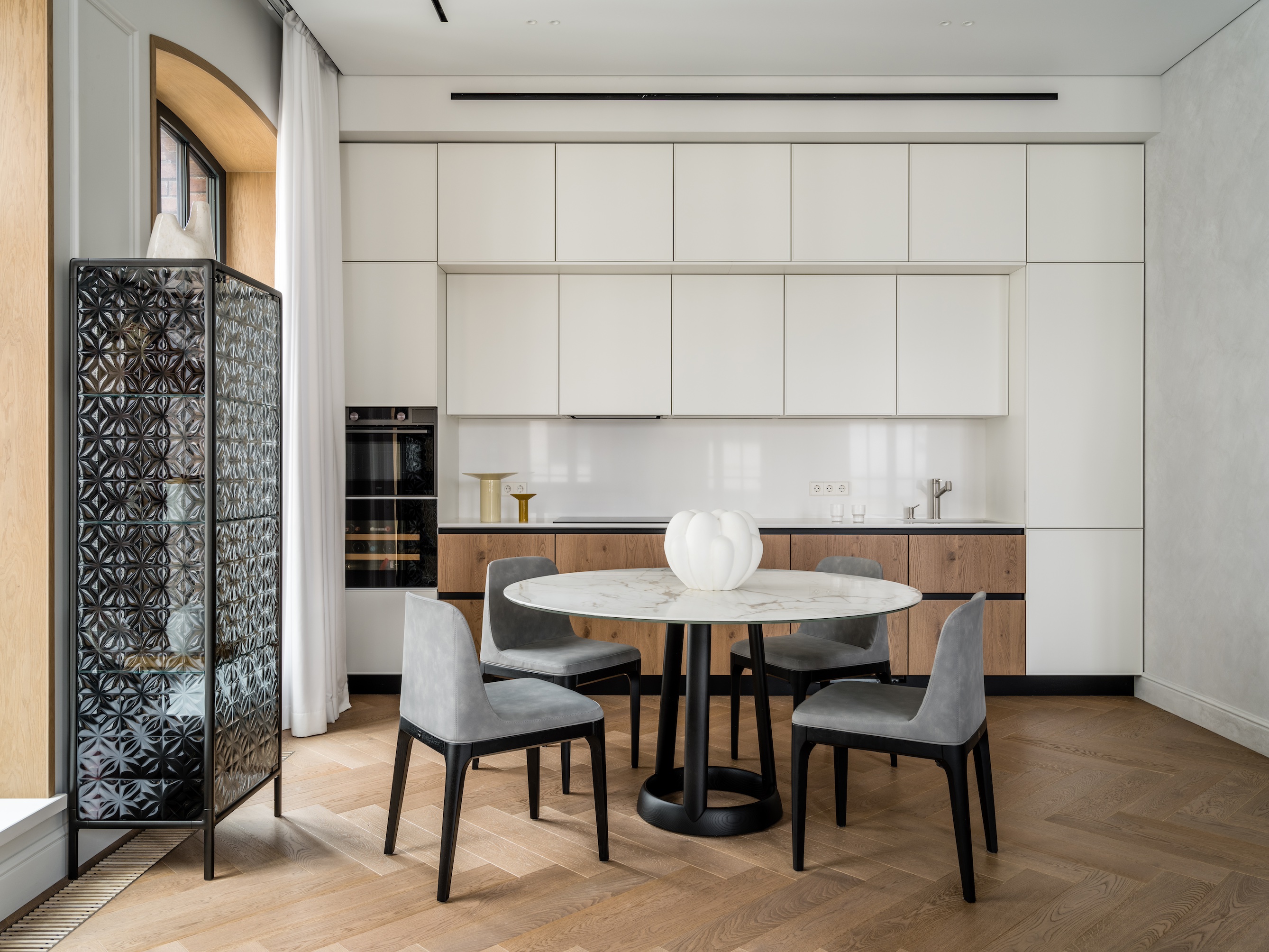 Строительные и ремонтные работы команда завершила за девять месяцев. За это время успели привезти мебель из Европы и изготовить встроенные шкафы по эскизам Натальи на заказ в Москве. Решения, использованные в проекте, помогают поддерживать порядок и визуальную чистоту, а пространство остаётся наполненным «воздухом» — именно так его и задумывали заказчики. Сегодня они уже работают с Натальей над третьим проектом, что лучше любых слов говорит об их доверии и удовлетворённости результатом.