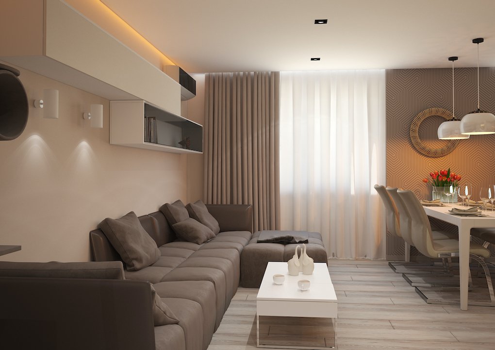Проект квартиры для семейной пары. Перед нами стояла задача создать на небольшой площади максимально функциональное и уютное пространство. Основная трудность заключалась в том, что площадь маленькая, а функциональность должна быть на уровне большой квартиры.