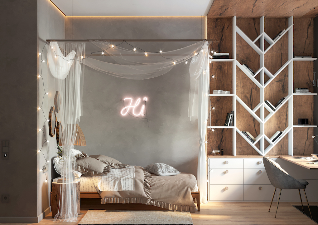 Квартира расположена на высоком этаже, в жилом комплексе Достояние. На площади 100 кв.м. расположились кухня, гостиная, холл, гостевой санузел, мастер-спальня с собственной ванной комнатой и гардеробной, а также детская для дочери.