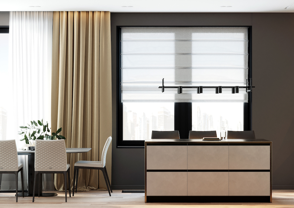 В интерьере использованы натуральные материалы, максимально экологичные по своим свойствам, природных оттенков и тонов. Камень, дерево, металл.