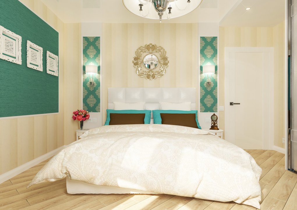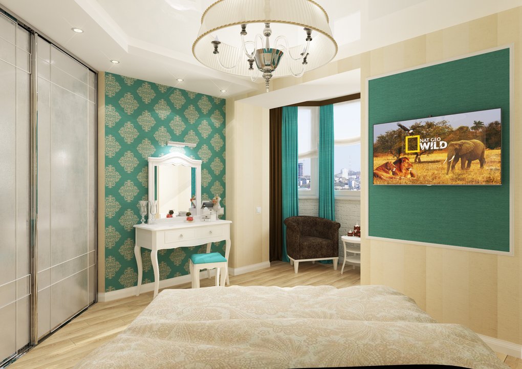 Центральным помещением в квартире выступает кухня-столовая и гостиная. Стеклянной перегородкой с распашными дверьми отделен кабинет (одновременно гостевая спальня). И фиксированной стеклянной перегородкой отделена кухня от пространства коридора. В спальню можно пройти только через одну из гардеробных через "потайную" дверь, спрятанную в поверхности стеновых панелей.